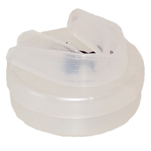 Anpassbarer Zahnschutz aus Weichgummi für die obere Kieferhälfte. Erhältlich In verschiedene Farben. Wird mit verschliessbarer Verstaudose geliefert.