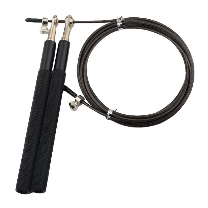 FIGHT-FIT Stahldraht Springseil mit Griffen aus Aluminiumlegierung! Trainieren Sie wie die Profis, egal ob Sie im Crossfit, Boxen, Kampfsport oder zu Hause trainieren, dieses Springseil ist für jeden geeignet. Das Springseil ist für jeden geeignet vom Anfänger bis zum Experten. Hergestellt aus den hochwertigsten Materialien, um eine ultraschnelle Rotation und maximale Haltbarkeit zu gewährleisten. Einfache Einstellung dank zweier Gleitschrauben und Klemmen, die die Griffe auf eine bestimmte Länge auf dem Seil fixieren. Überflüssige Seillängen können aus Bequemlichkeit abgeschnitten werden, und Sie haben Ihr eigenes, maßgeschneidertes Springseil. Leichte und stabile Griffe aus 14 cm Aluminiumlegierung und PVC-ummanteltes Stahlseil.