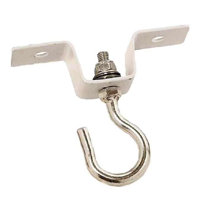 Deckenhaken mit zwei Löchern zur Befestigung an der Decke. Der Haken dreht sich ganzheitlich durch ein Kugellager. Dieser Haken ist für schwere Boxsäcke geeignet. Dieser Boxhaken ist für den professionellen Einsatz geeignet.