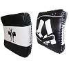 Gebogenes Schlagpolster aus Carbon Kunstleder und schlagdämpfender Spezialfüllung. Spezialpolsterung zur Schlagabsorbation auch für harte Kicks. Ein stabiler Griff für senkrechtes Halten und zwei seitliche Schlaufen.